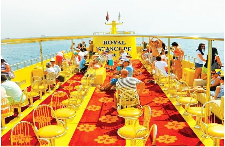 It’s just a ship equipped with a swivel seats, and windows located in its deep hall some three meters below sea level to be able to look down at the sea through clear panoramic windows.